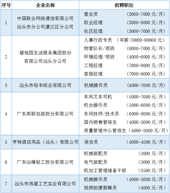 本次招聘会精选了7家优质企业,旨在搭建一个高效、精准的就业对接平台,为退役军人提供多元化、高匹配度的就业机会,为退役军人转型发展赋能,欢迎广大退役军人踊跃参加。